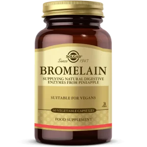 Ananastan elde edilen sindirim enzimi olan Bromelain içeren besin takviyesidir. 60 Kapsül İçindekiler Etken Maddeler Diğer İçerikler Her bitkisel kapsülde